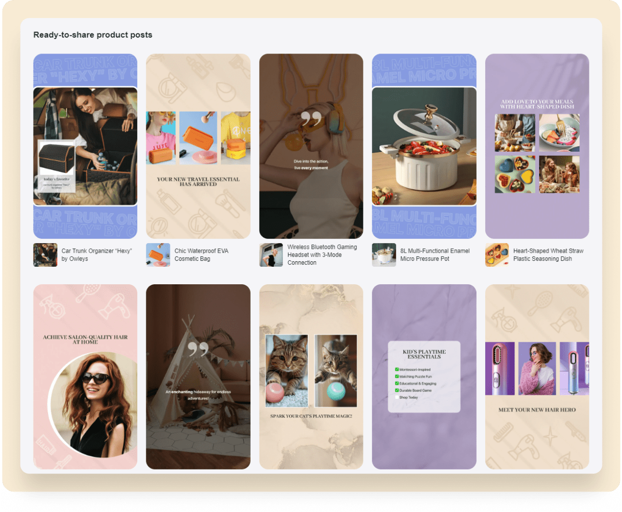 Step 6. Now, we’ve arrived at the “Ready-to-Share Product Posts” section: