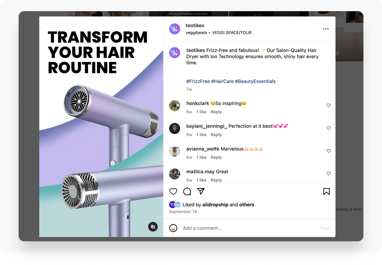 Posting often, especially with short videos linked to your website, can bring more traffic to your store. Why does it work? People view content all day, and even if they don’t click on your link right away, curiosity may bring them to your profile later. Once there, they may see your store link again, increasing the chance of a sale.