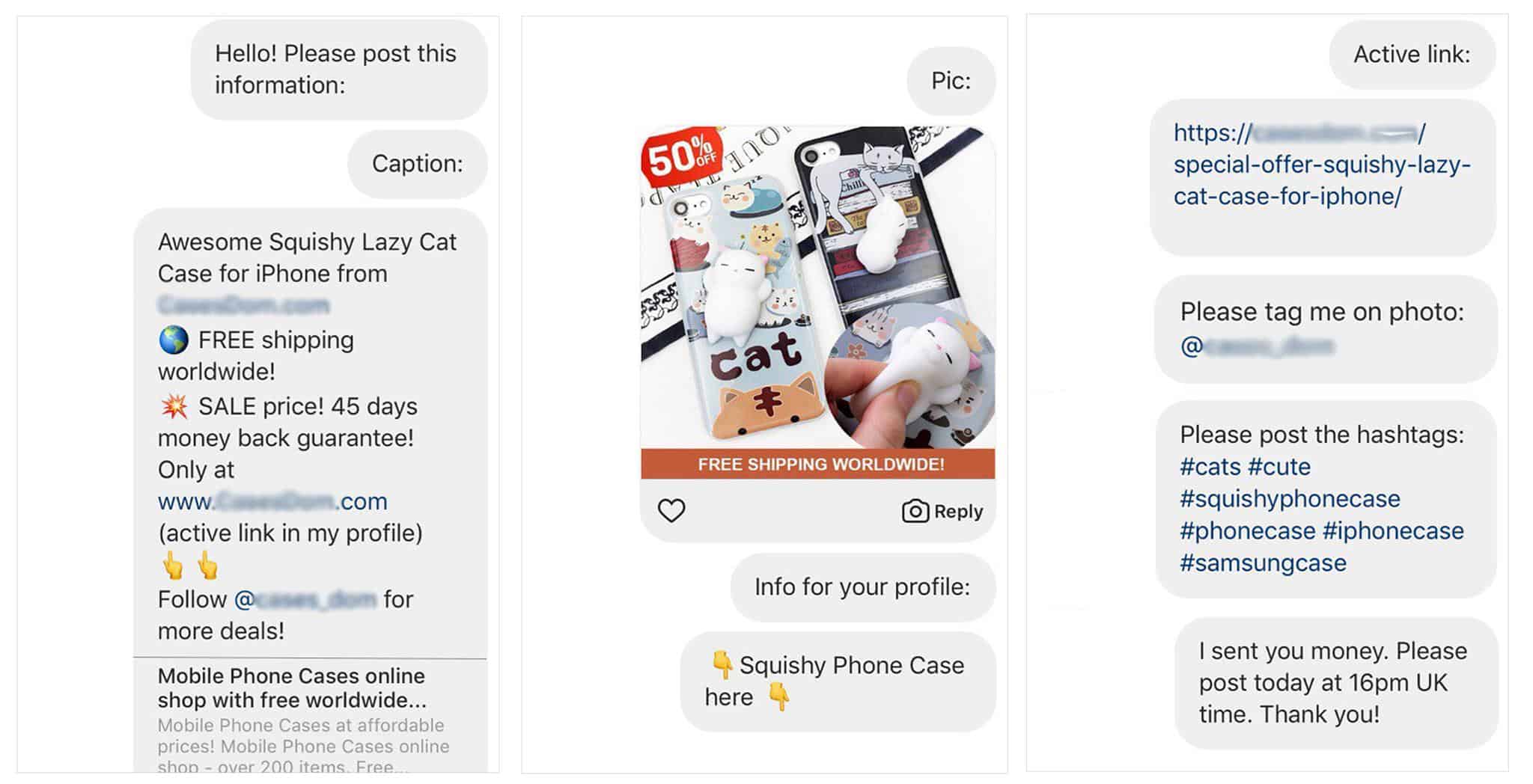 It is important to discuss what info a blogger should post for you. A standard set is a product image, a caption and a link to a product or some category in an account profile.
