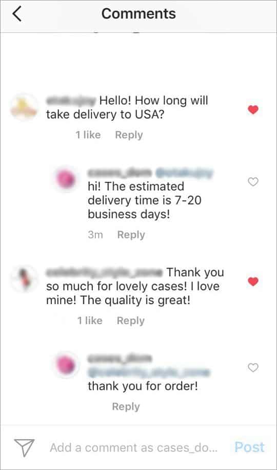 Create several Instagram accounts under different names and use them to leave comments under the shoutout. Write that you’ve bought this product, you’re satisfied with the quality and the delivery was fast. Such comments will definitely inspire other users to buy your product.