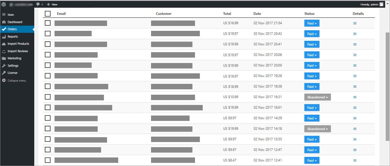 Obviously, the very first source of info about your sales is the “Orders” tab in AliDropship Plugin section on your site. Here you will see how many purchases were made and how many carts were abandoned.