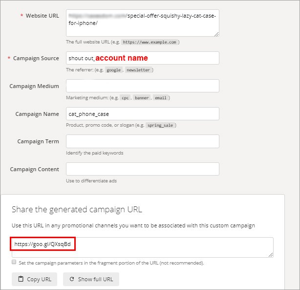 Actually, we experiment with such links and not always place links with UTM-marks because, as I previously mentioned, a link containing your shop’s name inspires more users’ trust.