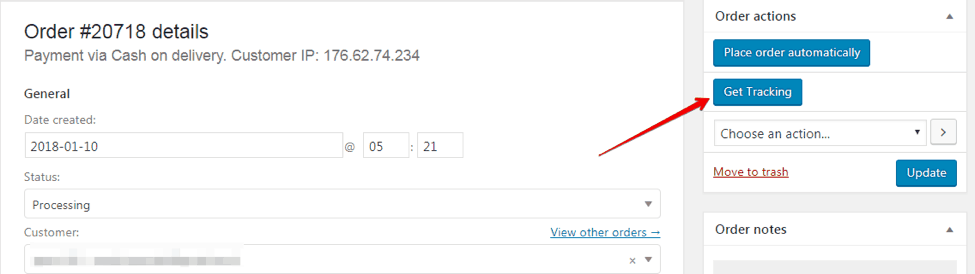- In a different browser tab, open the Orders section and hit the ‘Get tracking’ button