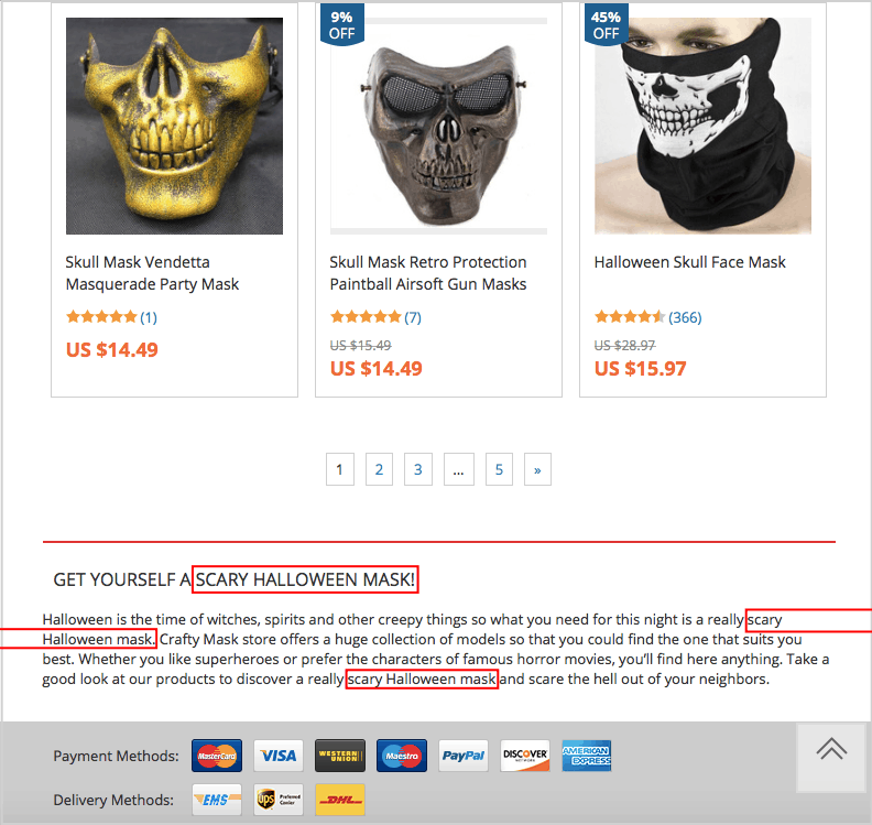 It’s totally Ok to use various keywords to improve SEO for ecommerce websites. After all, you want your online store to rank as high as possible with as many keywords as you can. But what is not Ok is to use too many keywords.