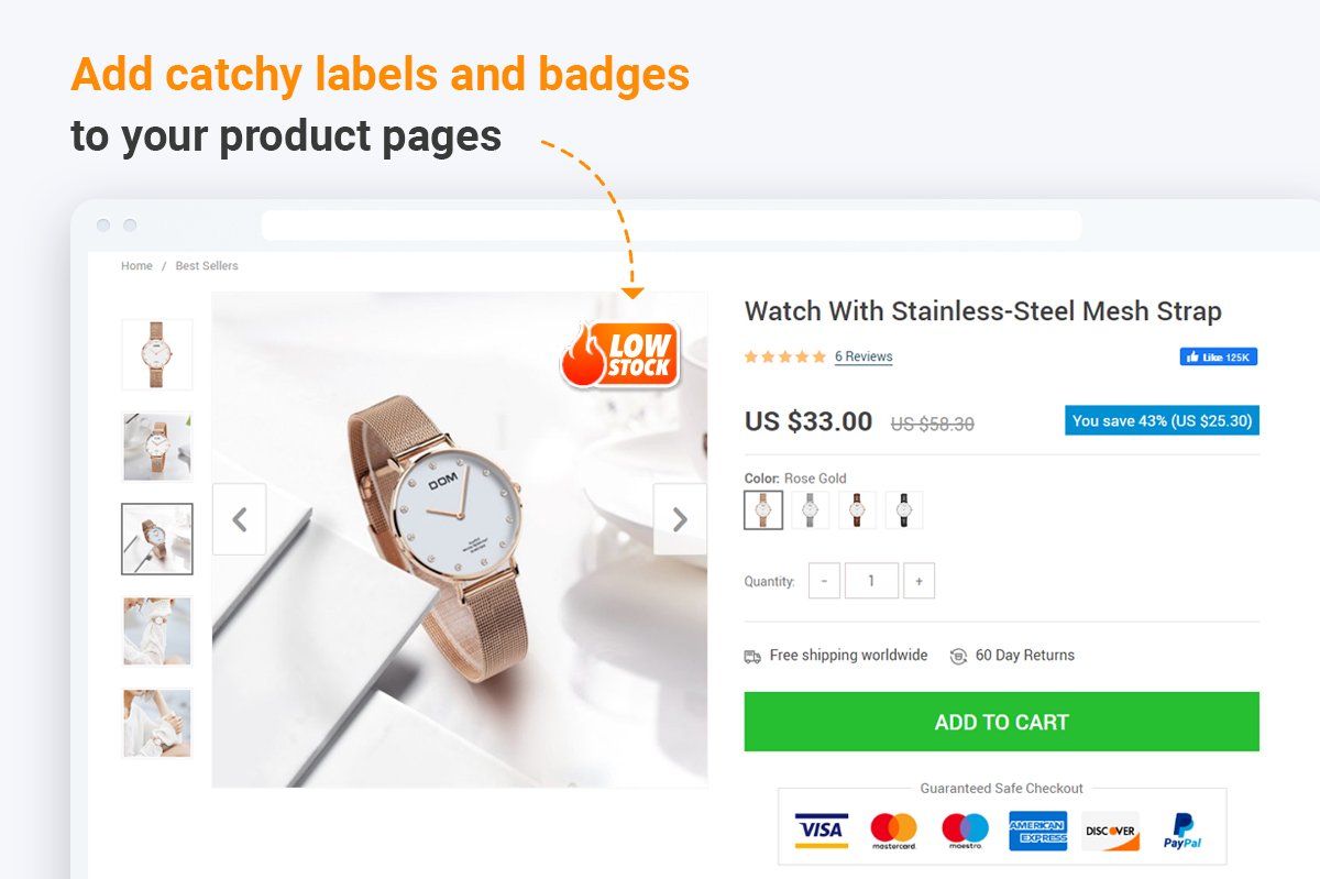 - Create a sense of urgency with labels from the Low Stock category