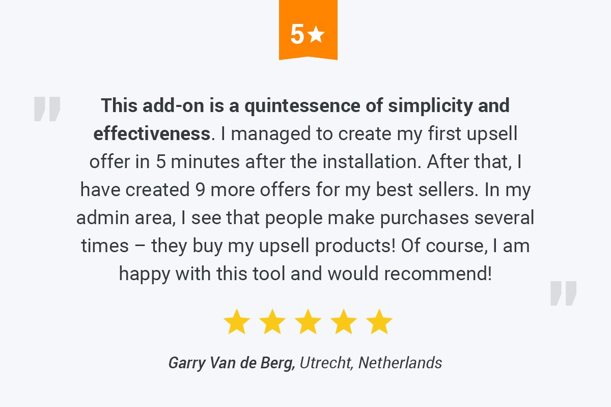 Immediately after the purchase, customer loyalty is at its peak and you can benefit from it with Purchase Upsell! This add-on allows you to create an unlimited number of offers to motivate customers to buy more right after successful order placement and payment.