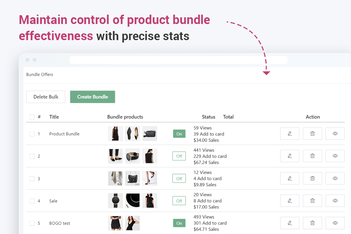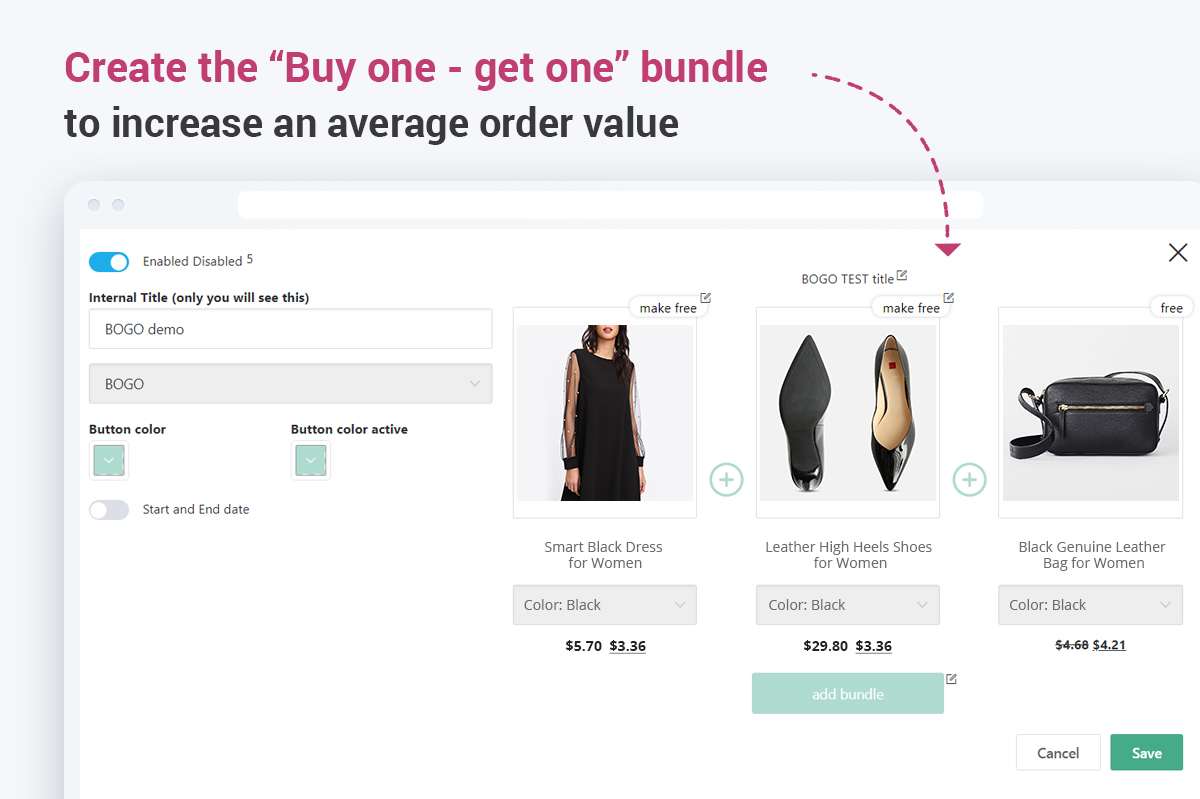 When shoppers browse your products, they’ll see enticing offers for product bundles with attractive discounts, which can boost their chances of buying.