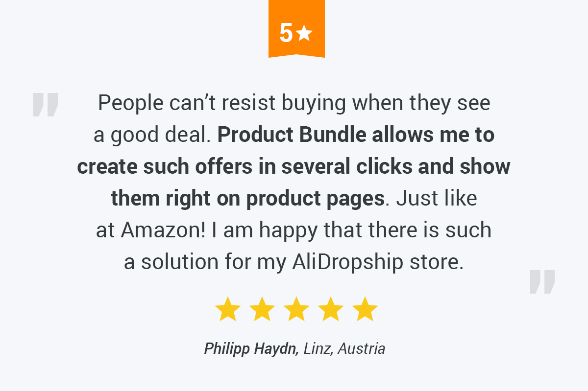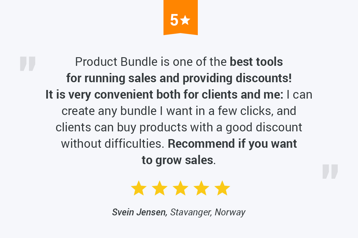 You offer your clients a set of several products and they can buy it with a good discount. In other words, you motivate them to buy more. You drastically increase average order value, get regular customers, and grow your profit.