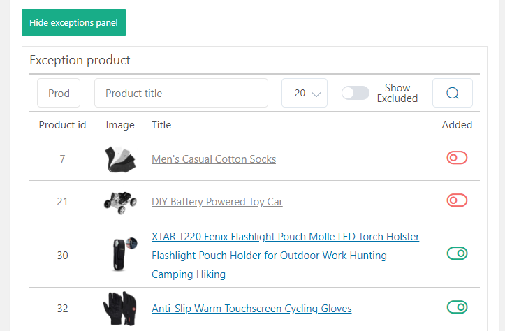 Products exceptions feature added