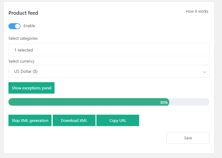 When settings are changed at 'Product Feed' tab, a relevant message appears